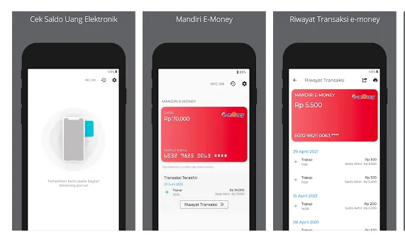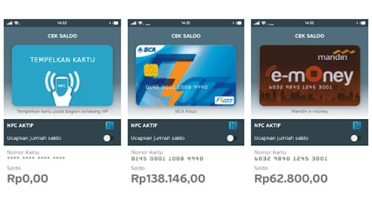 Di antaranya adalah kartu Mandiri e-money dan e-toll, Brizzi, Flazz, BNI Tapcash, sampai Megacash dari Bank Mega. Oh iya, aplikasi ini juga bisa mendeteksi ada atau tidaknya fitur NFC di ponsel Kamu.