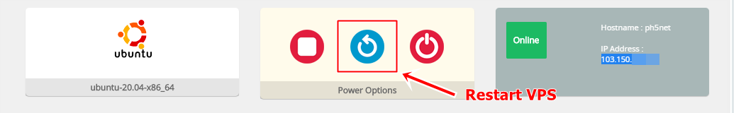 - Restart VPS Anda untuk melanjutkan ke tahap berikutnya