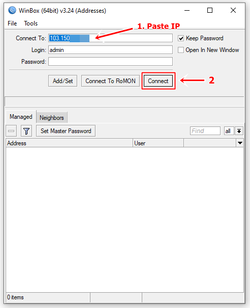 3. Membuka Mikrotik OS di Windbox
