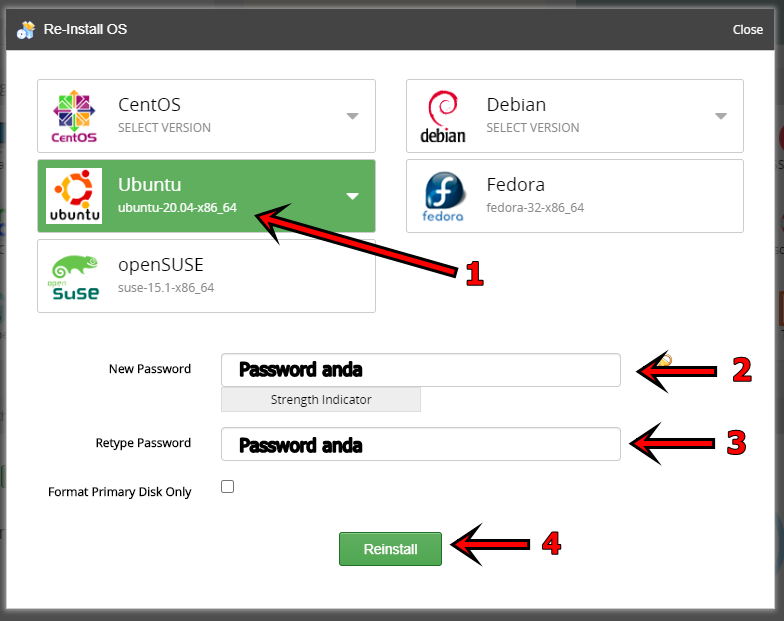 - Masukkan Password kemudian klik Reinstall