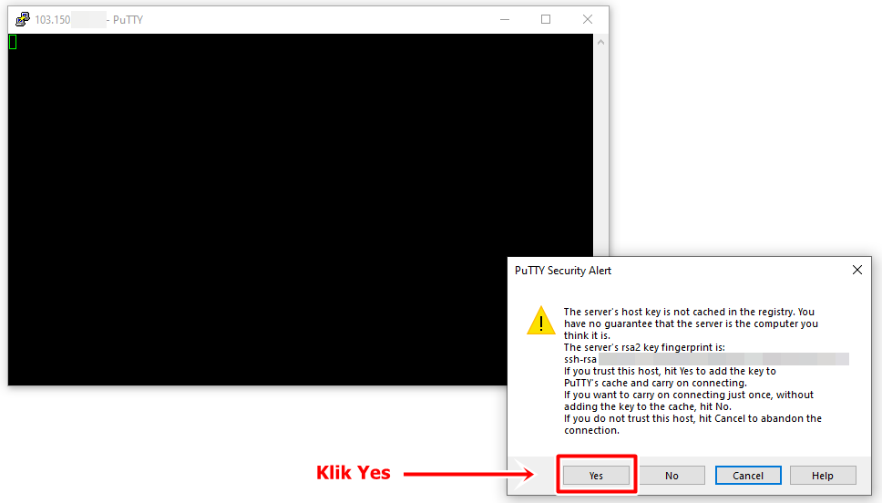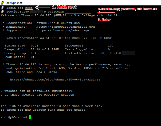 Kemudian, silahkan login VPS sebagai root menggunakan Software PuTTy.