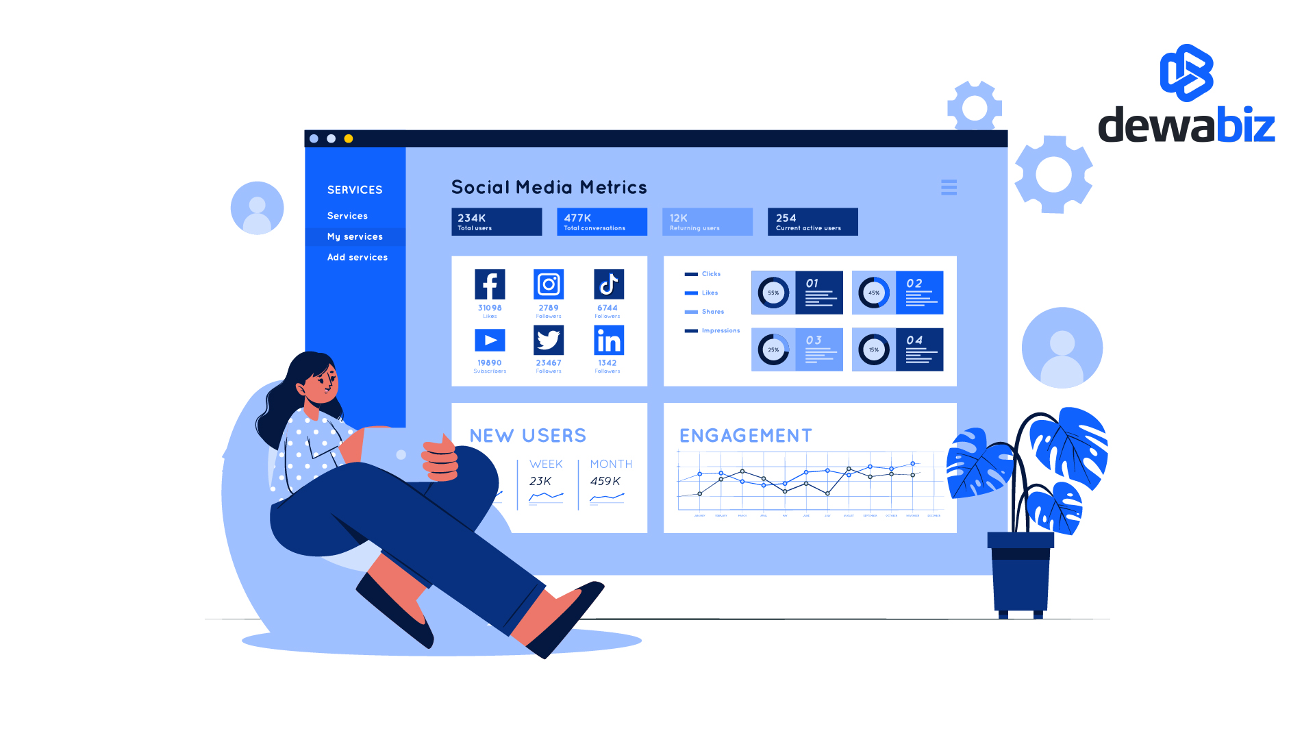 Tab dashboard memberikan bizzie macam-macam konfigurasi. Bizzie juga bisa melakukan kustomisasi dashboard, sehingga bisa memberikan tampilan yang lebih profesional dengan gaya khas produk tersebut.