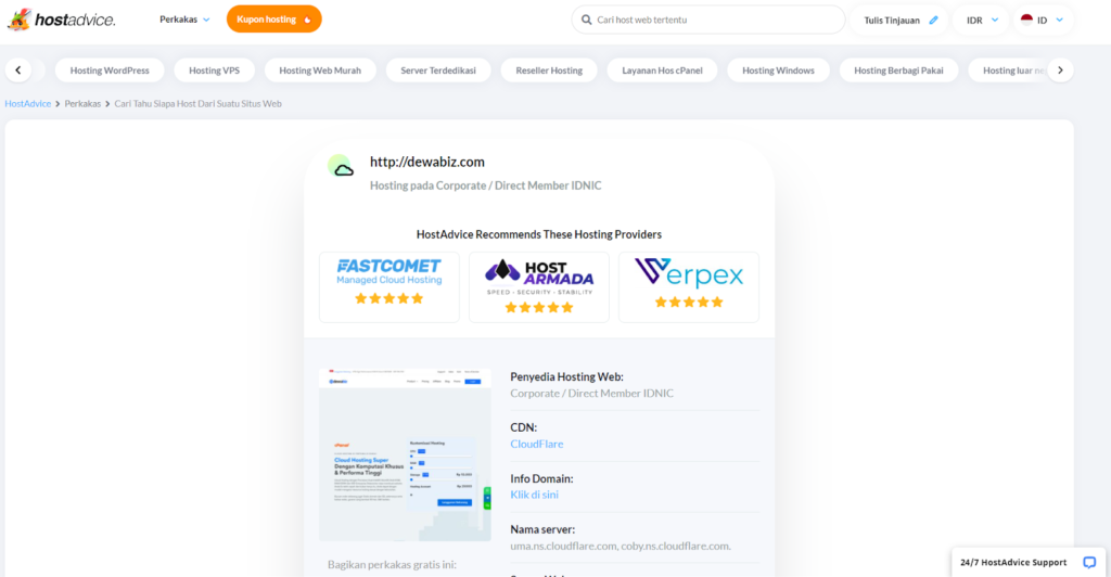Cara Mengetahui Hosting Website Menggunakan Hostadvice.com