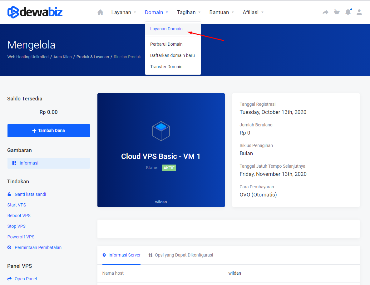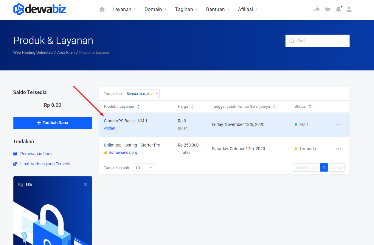 - Lalu klik VPS Anda.