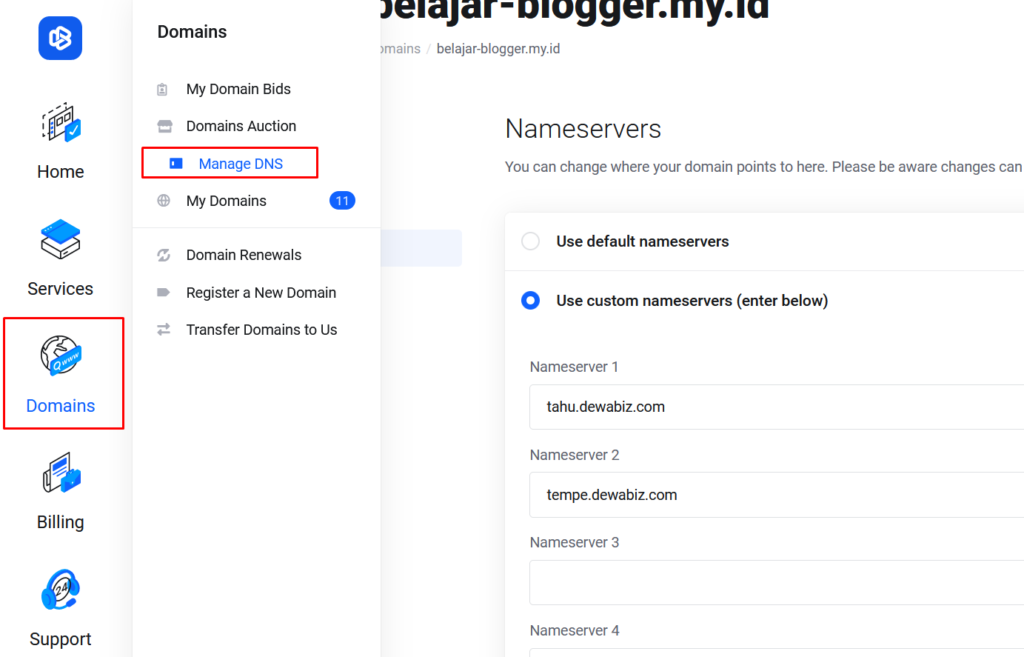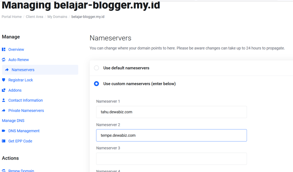 Mengatur Nameserver pada Member area