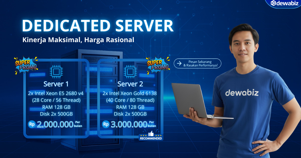 Promo #OmsetMeroket Jangan lewatkan promo menarik dari Dewabiz untuk segala kebutuhan bisnis Anda. Yuk mulai bangun usaha Anda dan tumbuh bersama. Tentukan Pilihan Promo Terbaikmu Promo Awal Tahun 2026 – Domain Rp 5.000/Tahun!Periode19 January 2026Kode KuponPromo Web Hosting Murah Diskon 50% + Free DomainPeriode19 January 2026Kode KuponPindah Hosting Awal Tahun, Lebih Cepat & Lebih HematPeriode19 January 2026Kode KuponNew Year Sale Domain .IDPeriode12 January 2026Kode KuponCLOUD VPS DEWABIZ 4X LEBIH CEPATPeriode25 November 2025Kode KuponPromo Dedicated Server DewabizPeriode01 December 2025Kode KuponPromo Spesial 9th Anniversary Dewabiz Domain .ID Cuma Rp 99.000/Tahun!PeriodeKode KuponPromo VPS Idul Adha 2025PeriodeKode KuponPromo Hosting Idul Adha 2025PeriodeKode Kupon 1 2 Berikutnya »
